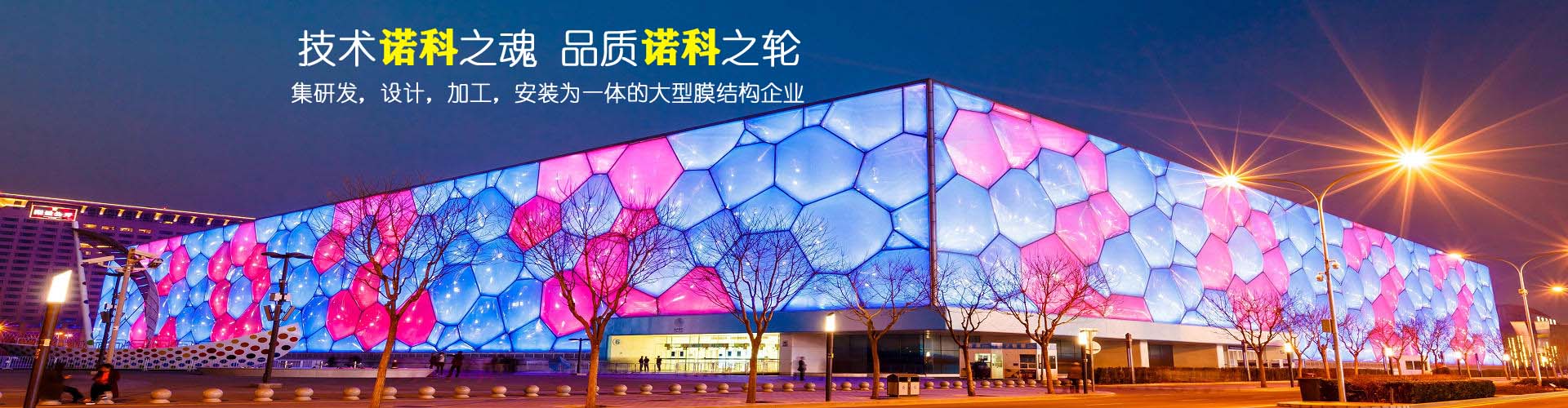 深圳市諾科空間膜結構公司 (簡稱諾科膜結構)是我國較早從事張拉膜技術開發,設計,制作,安裝,維護的大型專業膜建筑企業,專業承接鋼結構,膜結構建筑的方案設計,結構設計,靜動力計算分析,膜材裁剪設計,膜材加工制作,膜結構安裝以及使用維護等。膜材品牌有PTFE膜材,ETFE膜材,PVDF膜材,二氧化鈦膜材,沼氣膜材,污水處理膜材。膜結構工程有膜結構車棚,充氣膜結構,ETFE膜結構,大跨度煤棚,可拆卸移動式膜結構等。     公司設有總經辦、技術部、業務部、工程項目部、財務部、質檢部等部門,并設有江西、山東、湖南、湖北、浙江、江蘇、安徽、福建設有加工廠或辦事處,竭誠為廣大客戶服務。      深圳市諾科空間膜結構有限公司通···